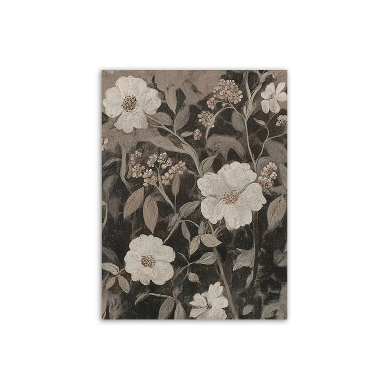 This beautiful art print features a beautiful faded dark floral pattern. Frame not included.